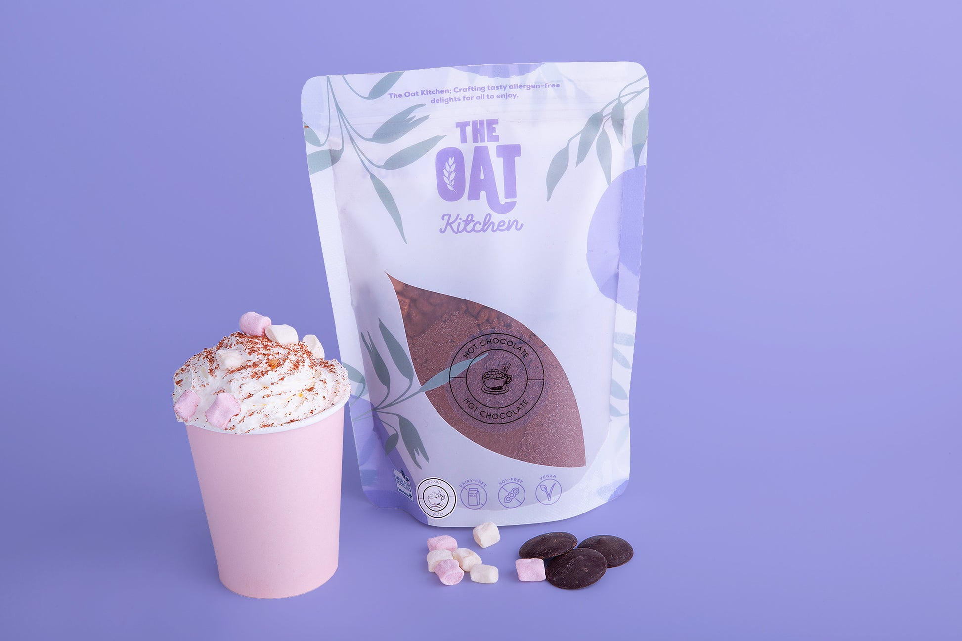 fat reduced cocoa powder acidity regulator, (potassium carbonate), OAT* extract (90%), coconut oil, salt, sugar, marshmallow: (sugar beet, glucose-fructose syrup, water, maize starch, dextrose, gelling agent: red beetroot, carrageenan, hydrolysed rice protein, natural vanilla flavouring) CHOCOLATE DROPS